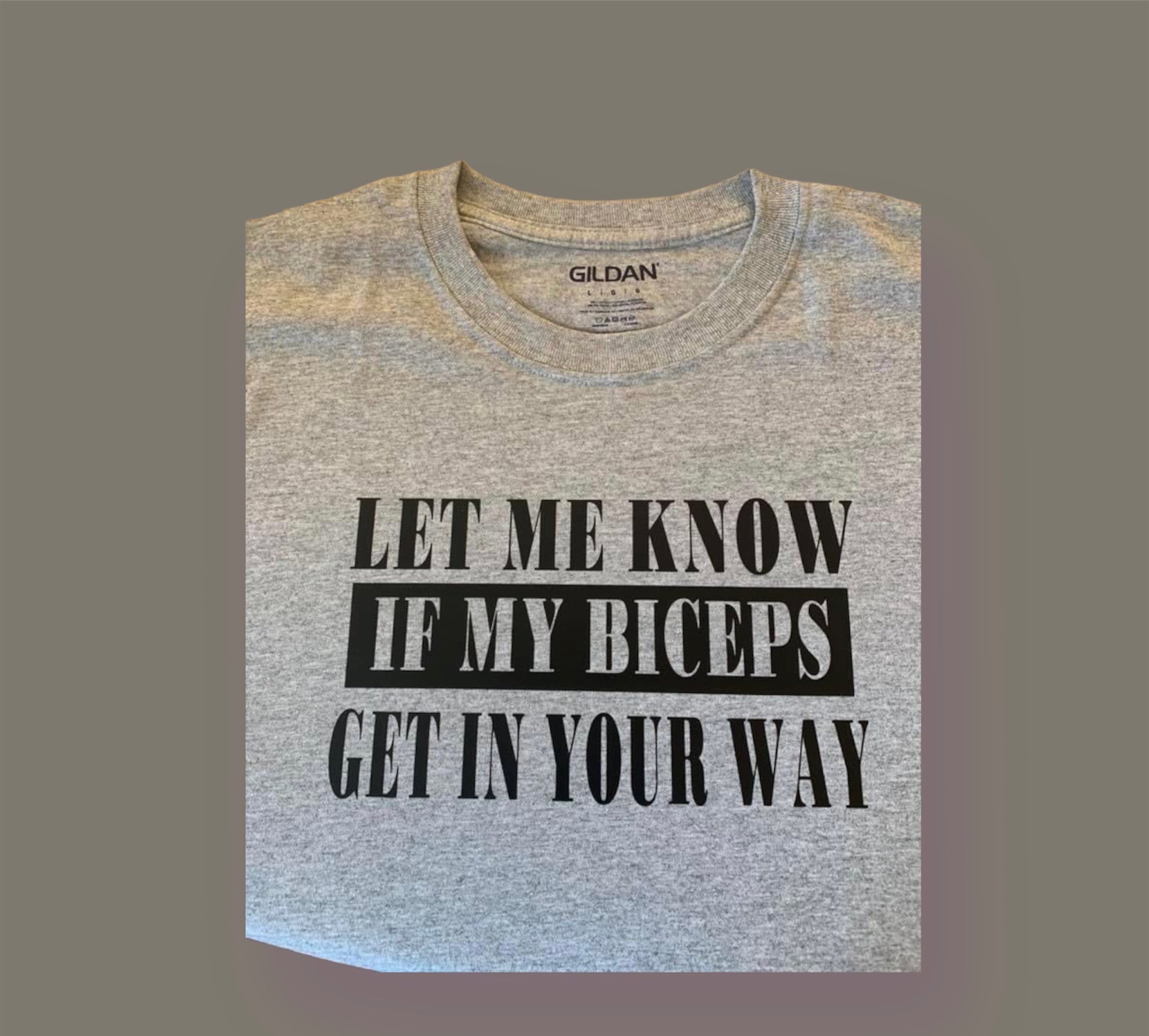 Flex your muscles and your sense of humor with the "Let me know if my biceps get in your way" T-Shirt. This shirt is perfect for those who like to show off their gains while also keeping things light-hearted. Made from premium materials, it's both comfortable and durable. Whether you're hitting the gym or just out and about, this shirt is sure to make a statement.