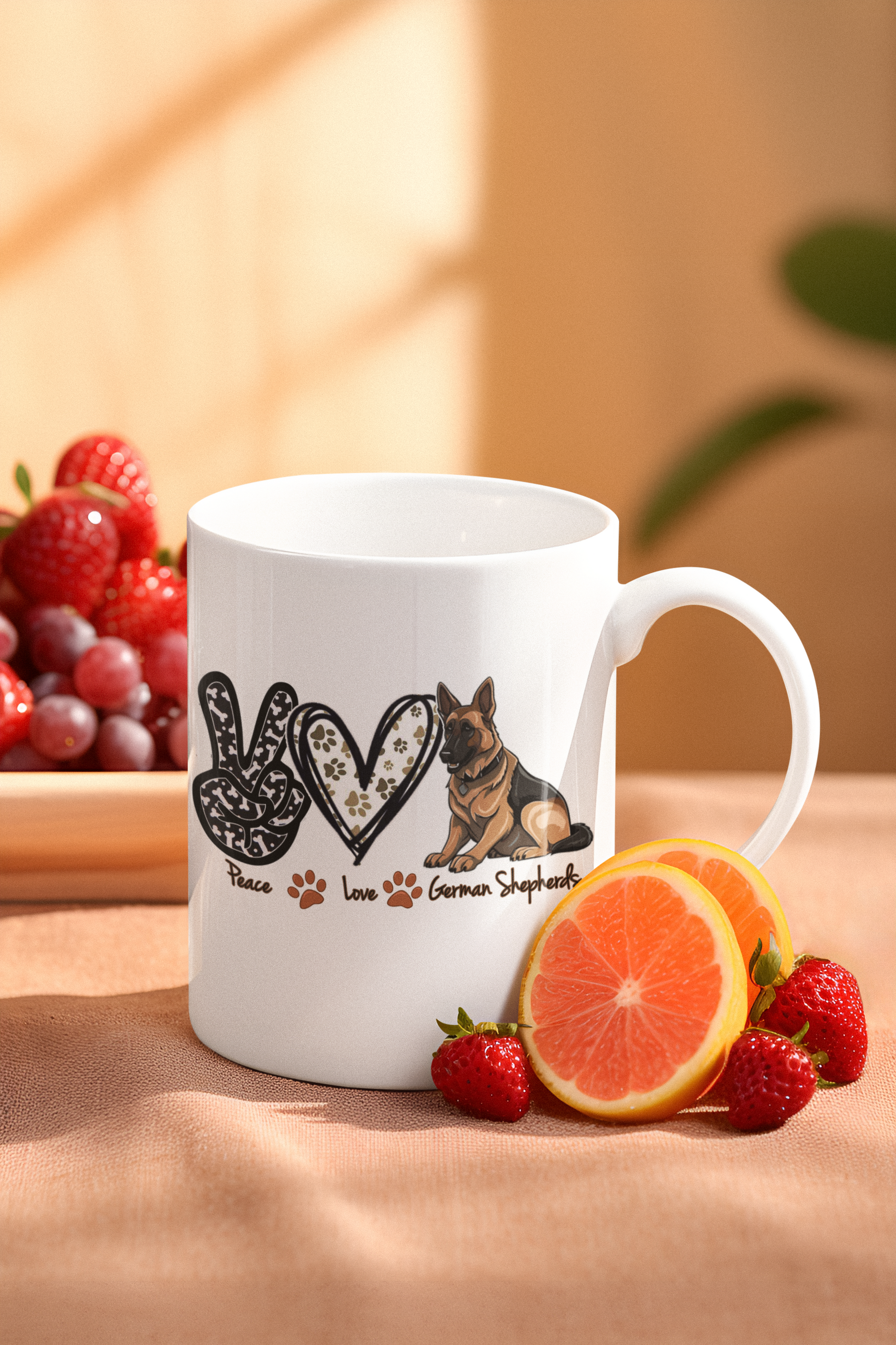 Peace Love German Shepherds Coffee Mug; GSD; Dog Lover